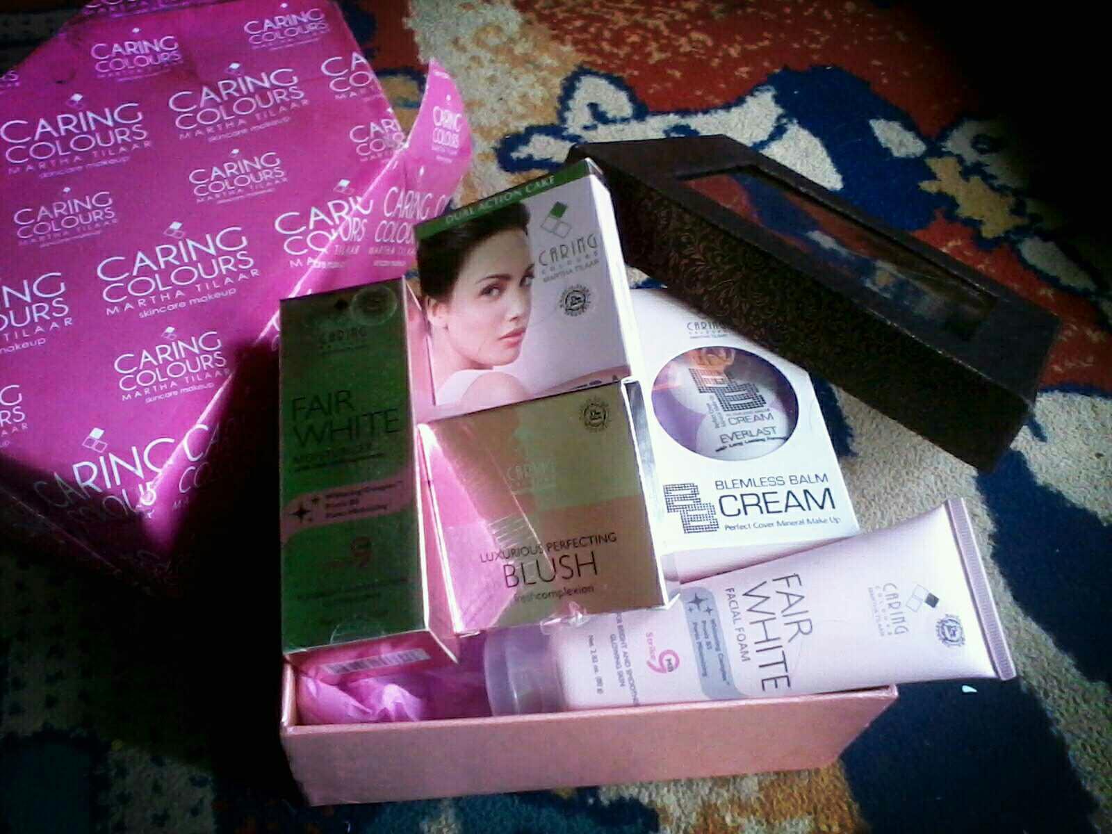 Paket ini sebenernya suatu kesalahan, soalnya aku kan menang kuis di facebooknya caring colours seharusnya hadiahnya itu adalah voucher MAP Rp. 200.000 tapi malah dapetnya Paket kosmetik Caring Colours seharga Rp. 200.000 include cute box :). but its okay, i love CC too :). Review menyusul~